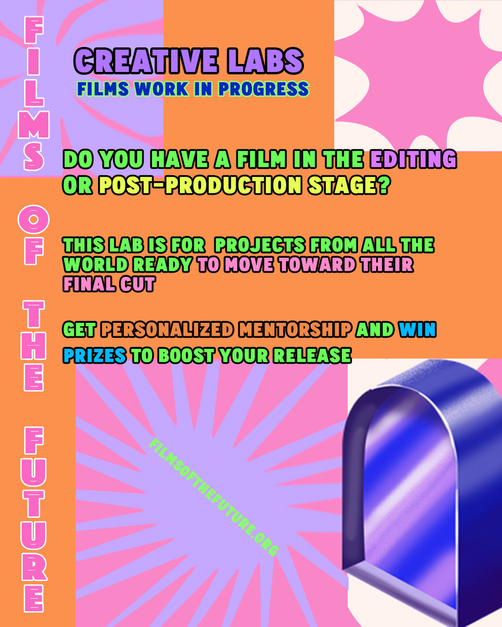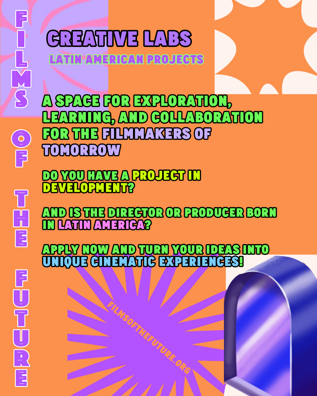 Both programs offer participants a space to advance their projects, learn from film professionals, and build valuable relationships for their careers. Selected projects in both categories will benefit from international visibility and networking opportunities provided by the Films of the Future Festival.